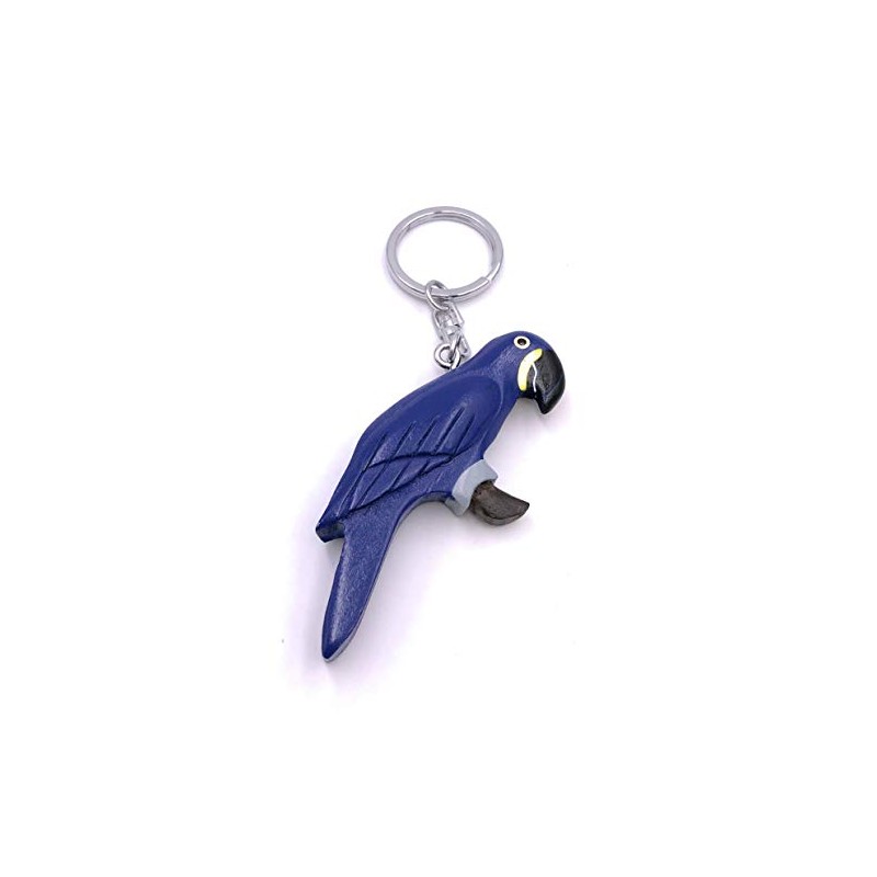 H-Customs Hyacinth Macaw Bird Parrot Wood Noble Handmade Keychain Pendant