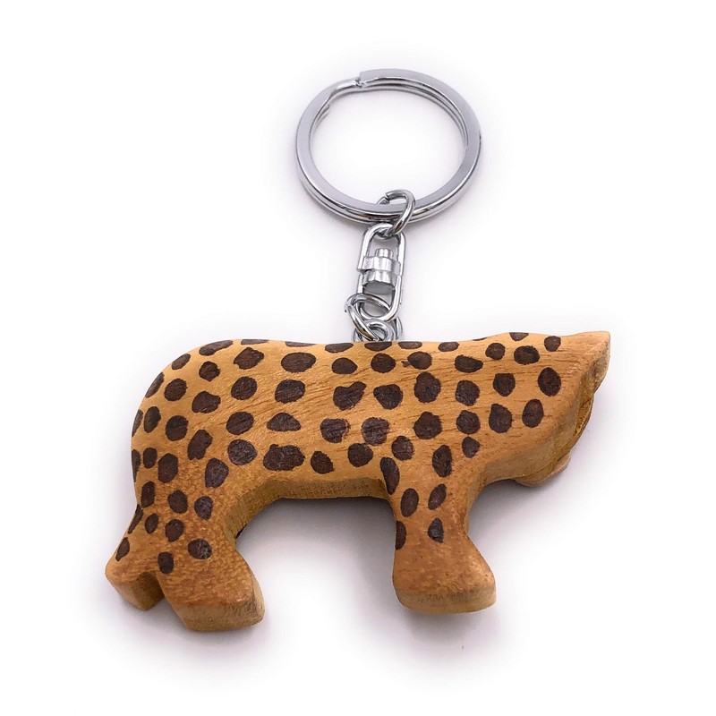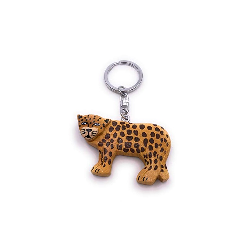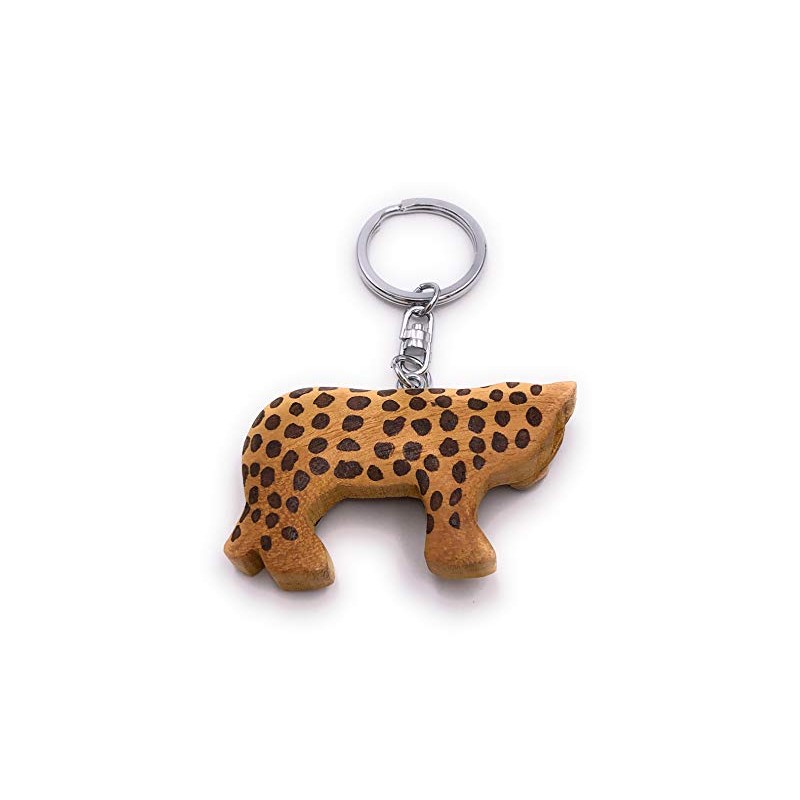 H-Customs Leopard Africa Animal Wood Elegant Handmade Keyring Pendant