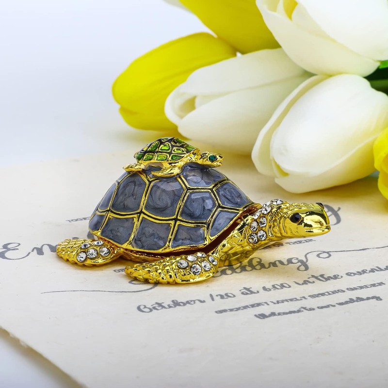 H&D Hyaline&Dora Mutter und Baby Schildkröte Schmuckkästchen mit funkelnden Kristallen handbemalte Figur Sammlerstück Ring Halter