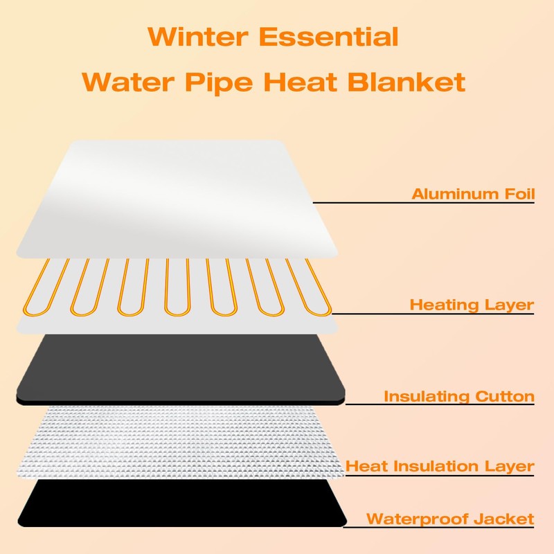 - 2022 Innovative Product:pipe electric heating blanket developed by H&G Lifestyles, it features a four-layer thermal insulation design and built-in waterproof heating cable,Keeps water pipe from freezing down to -40˚F,Ideal for water hose freeze protection