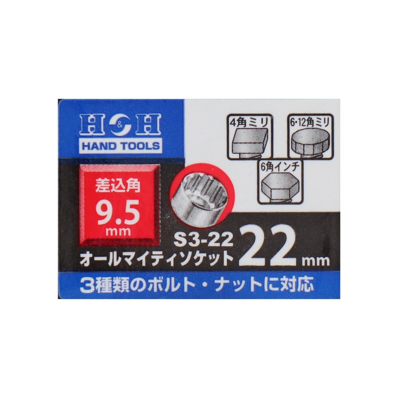 H & H 9.5 mm Square o-rumaitexisoketto 22 mm S3 – 22
