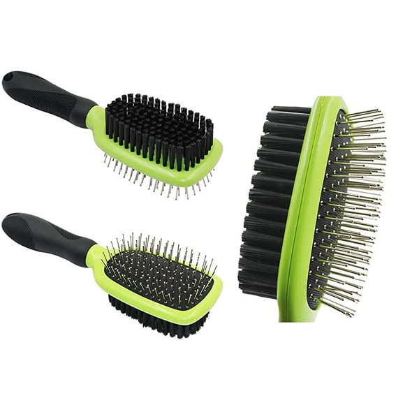 - ✿【2 IN 1 DESIGN PETS HAIR BRUSH】– Our 2 IN 1 hair brush is very convenient to have the bristle side and the pin side in one brush instead of having to deal with 2 separate brushes. The pin side is sturdy and brushes through most tangles and the bristle side is nicely spaced so you can easily remove any hair.