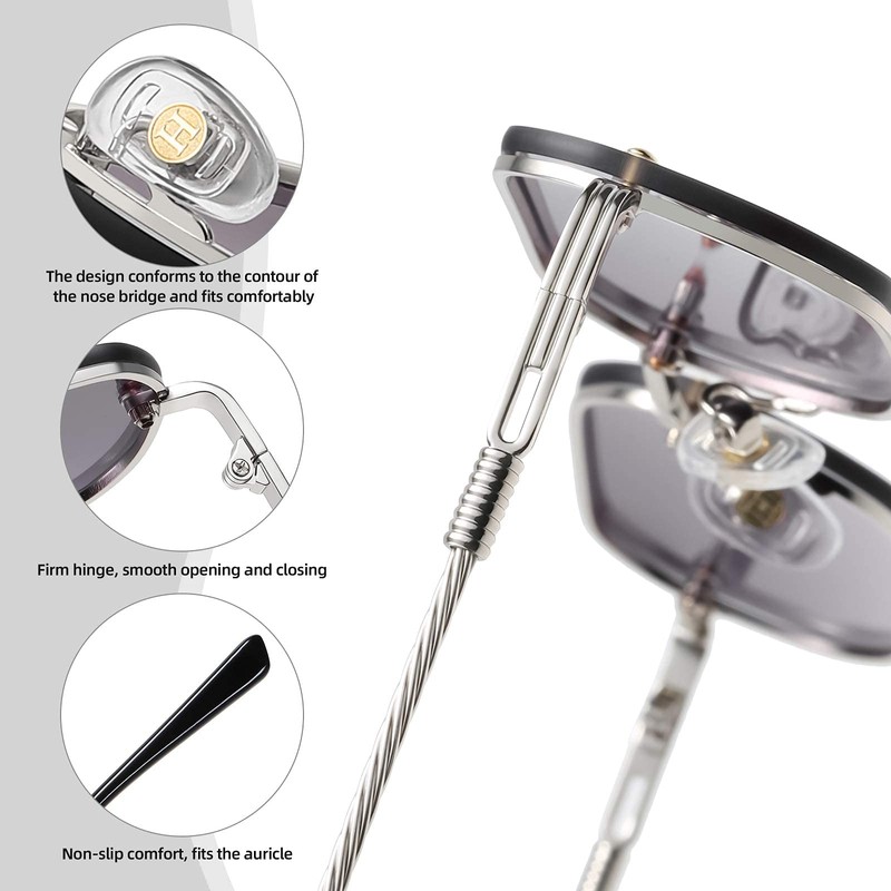 - Lightweight Sunglasses: These sunglasses are made of ultra-thin and sturdy metal material with a good glossy finish. Lightweight frames reduce pressure on the nose. Silicone nose pads prevent skin irritation.