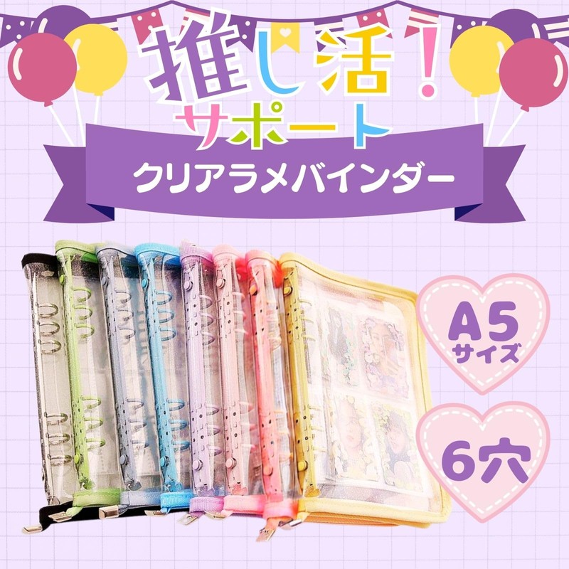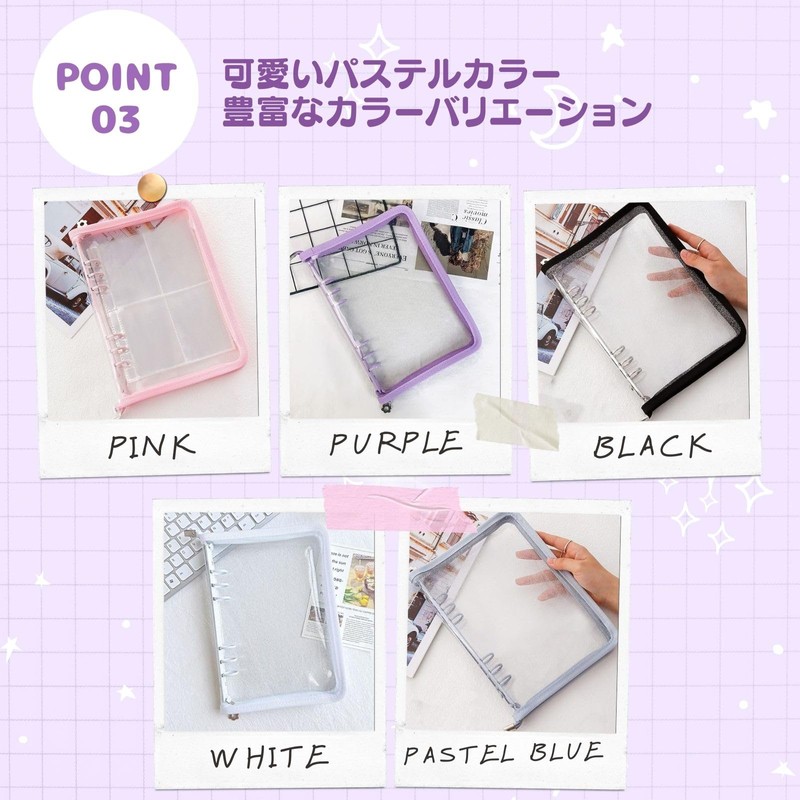 H&J A5 Clear File Trading Card Case Binder 6 Holes Holder Bromide Case System Notebook Refill Korea (Pink (Star Pattern))