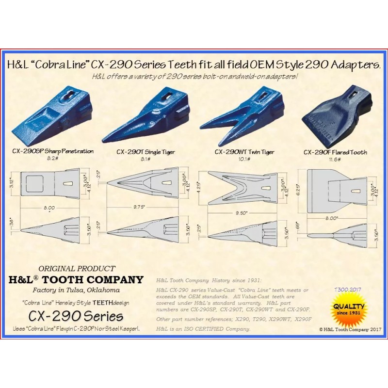 H&L X290F Hensley Style Flare Wide Bucket Teeth by H&L Tooth Company, 290 X290