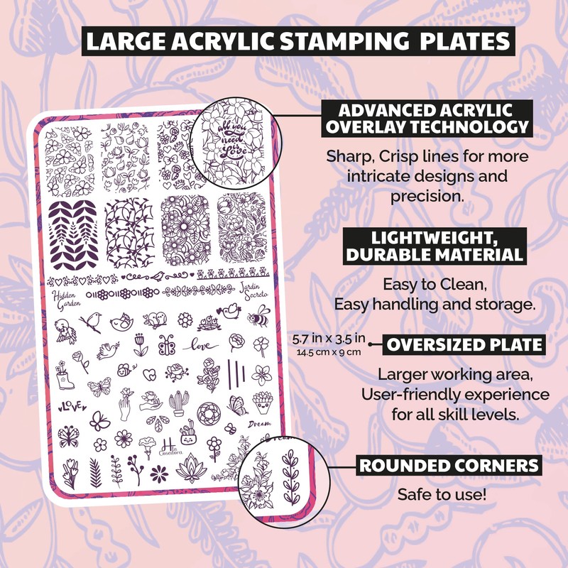 - NATURE-INSPIRED NAIL ART - Unleash your inner gardener with our "Hidden Garden" plate, featuring an array of nature-inspired designs including flowers, plants, leaves, birds, and botanical textures. Perfect for creating organic, outdoor-inspired looks on your nails.