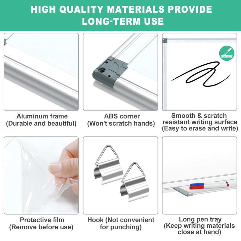 - Multiple Uses: The white board is a good choice for home, school, office, small group instruction, kitchen, stores, dormitory and classroom etc. Perfect for play counting, guided reading, learning, presentation, drawing, education and grocery list etc, without paper wasting.