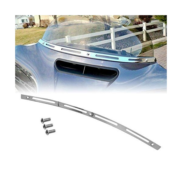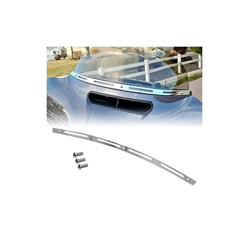 • 🔻 This highly polished stainless steel windshield trim is accented by four slots that allow the color of the outer fairing to show through.