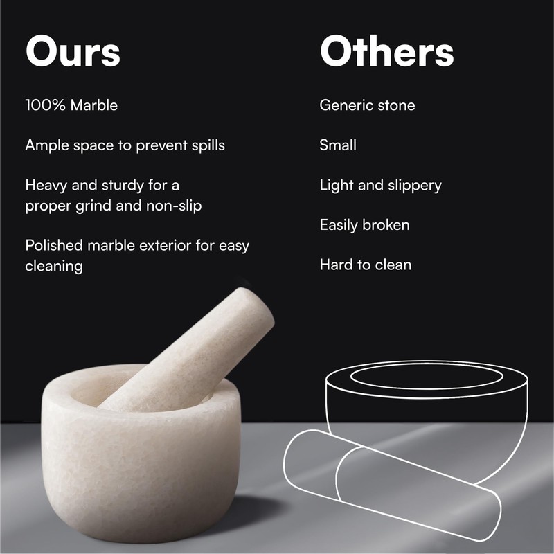 H&S Pestle and Mortar Set Premium Marble White - 8.5cm(3.3") Diameter
