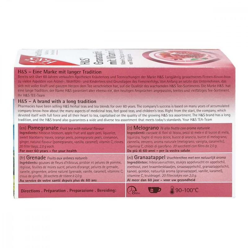 Hibiscus flowers, apple ingredients, S wood, blackberry leaf tter s, orange peels, natural aroma (pomegranate, vanilla, caramel), pomegranate husks (3%), cinnamon, ginger, vitamin C (1.32%), cloves.