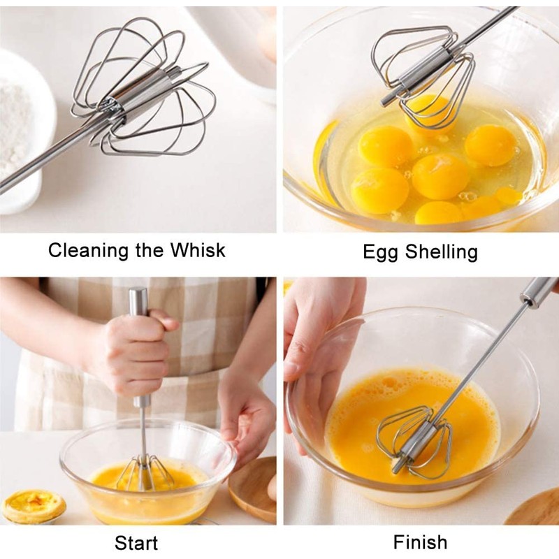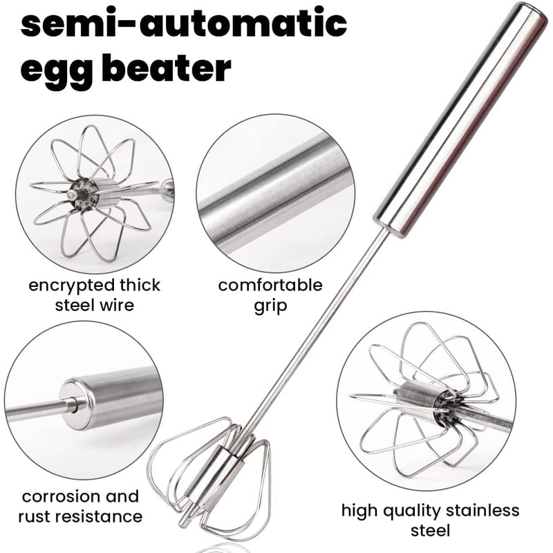 H&S Professional Egg Whisk Beater - Stainless Steel Wire Whisk Hand Push Semi Automatic Blender Mixer