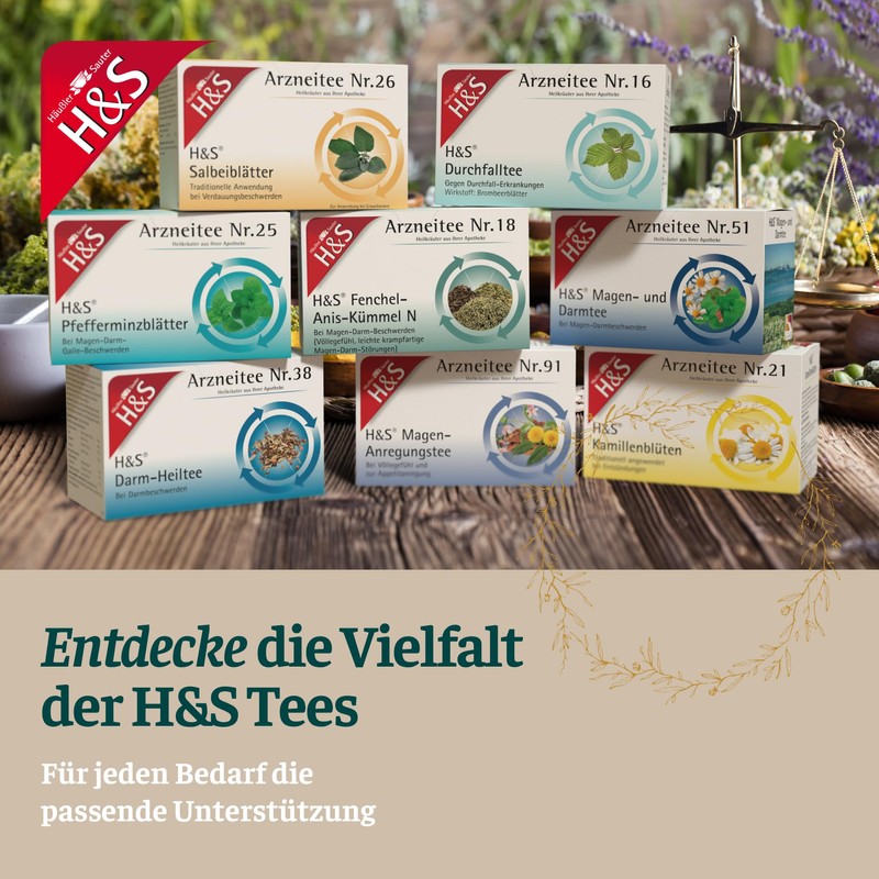 Sage is a widely used remedy in naturopathy. The H&S sage tea works quickly and effectively against the symptoms of gastrointestinal problems with the help of the power of medicinal herbs.