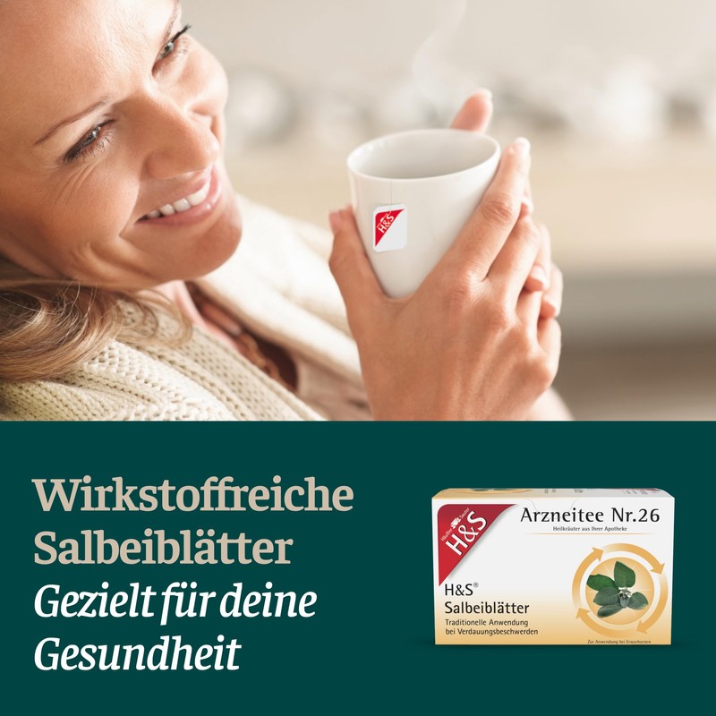 H&S Sage Leaves: Medicinal Tea No. 26 Tea for Digestive Problems, Sage Dried, 20 x 1.6g
