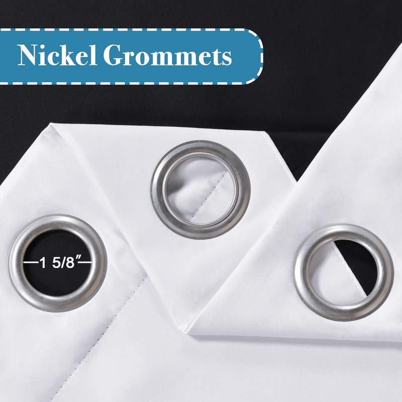 - TWO(2) LAYERS & THICK: Sold per pair including 2 luxurious lined panels. Panel measures 52" wide x 84" long | Set measures 104" wide x 84" long. Each panel is constructed with 8 sleek metal grommets (diameter is 1 5/8"), can be hung easily on a basic or decorative curtain rod