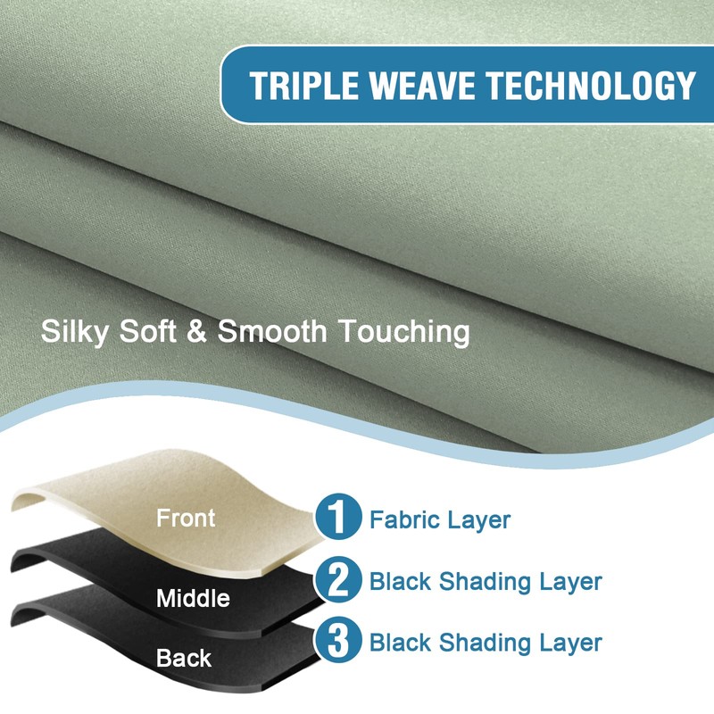 FASHIONABLE DECOR- These muti-functional curtains are interwoven by advanced triple weave technology, feature with black backing for 100% blackout effect.