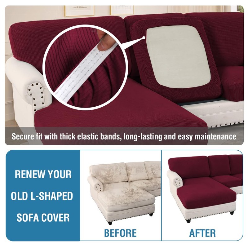 H.VERSAILTEX 2025 New Sectional Couch Covers 6 Pieces Stretch Sofa Covers for Sectional Sofa Set Separate L Shaped Couch Cover for Both Left/Right Couch (Seat and Back: 1 Chaise + 2 Sofa, Burgundy)