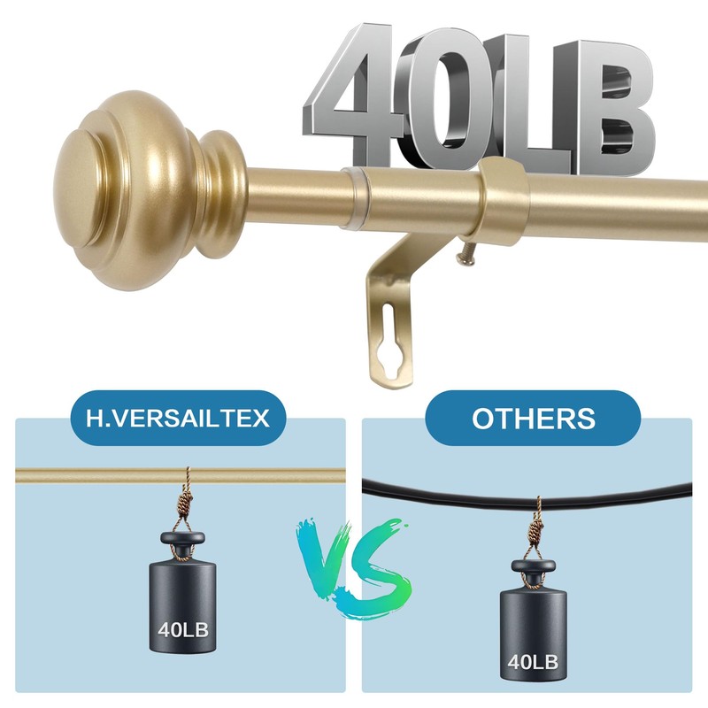 H.VERSAILTEX Curtain Rods for Windows 16.2 to 106.2 Inches 3/4 inch Diameter Adjustable Decorative Telescoping Curtain Rod with Brackets Heavy Duty Splicing Curtain Rods with Classic Finials, Gold