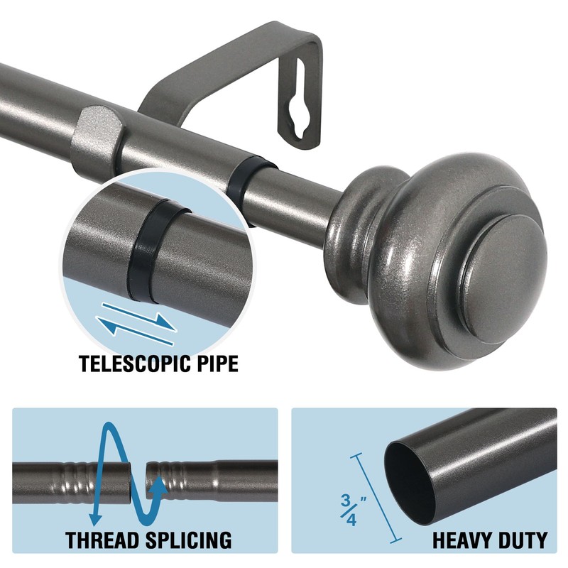 - ADJUSTABLE LENGTH: 3/4-Inch Diameter Decorative Curtain Rod adjusts from 16.2 to 59.4 Inches by splicing and telescoping