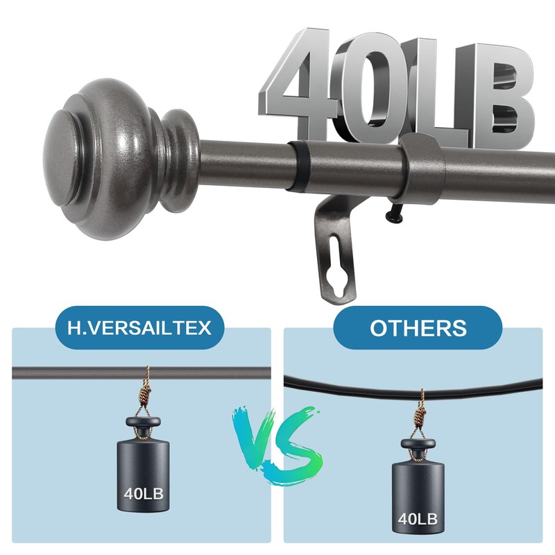 H.VERSAILTEX manufactures this classic finial curtain rod set, the renovated high quality brings a simple and clean look to any room while supporting any desired drapery. It telescopes and splices to fit any window size and is available in four solid color finishes to fit any preference. Great choice for grommet, back tab, rod pocket and tab top curtains. This classic standard curtain rod is ideal for living rooms, bedrooms, dining rooms and kitchens.