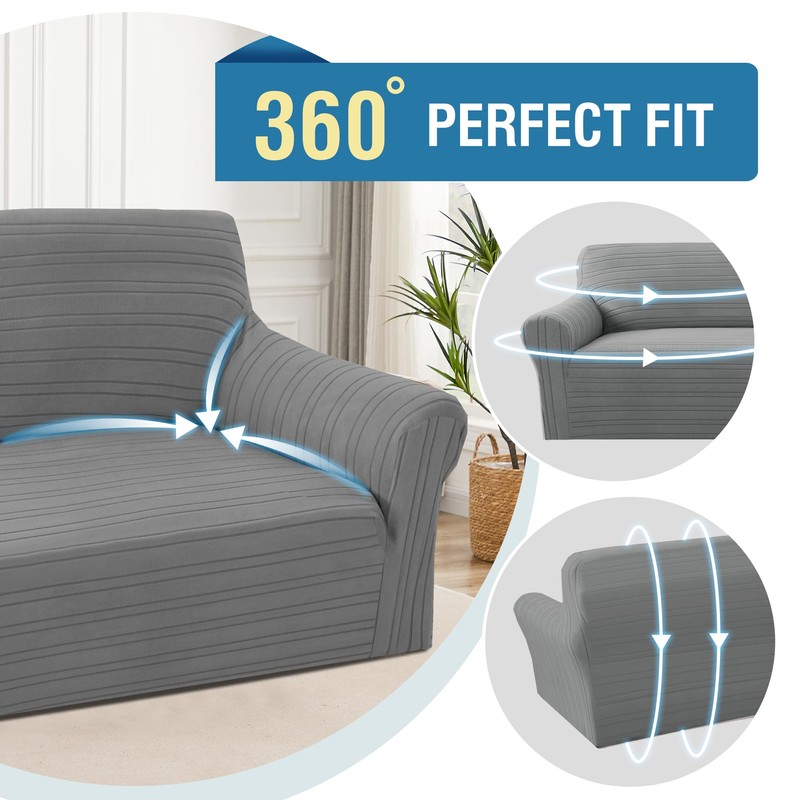 H.VERSAILTEX High Stretch Sofa Slipcover 1-Piece Couch Cover Non Slip Sofa Cover with Elastic Bottom Thick Soft Sofa Covers Washable Polyester Spandex Jacquard Fabric Stripe Design(XL Sofa, Grey)