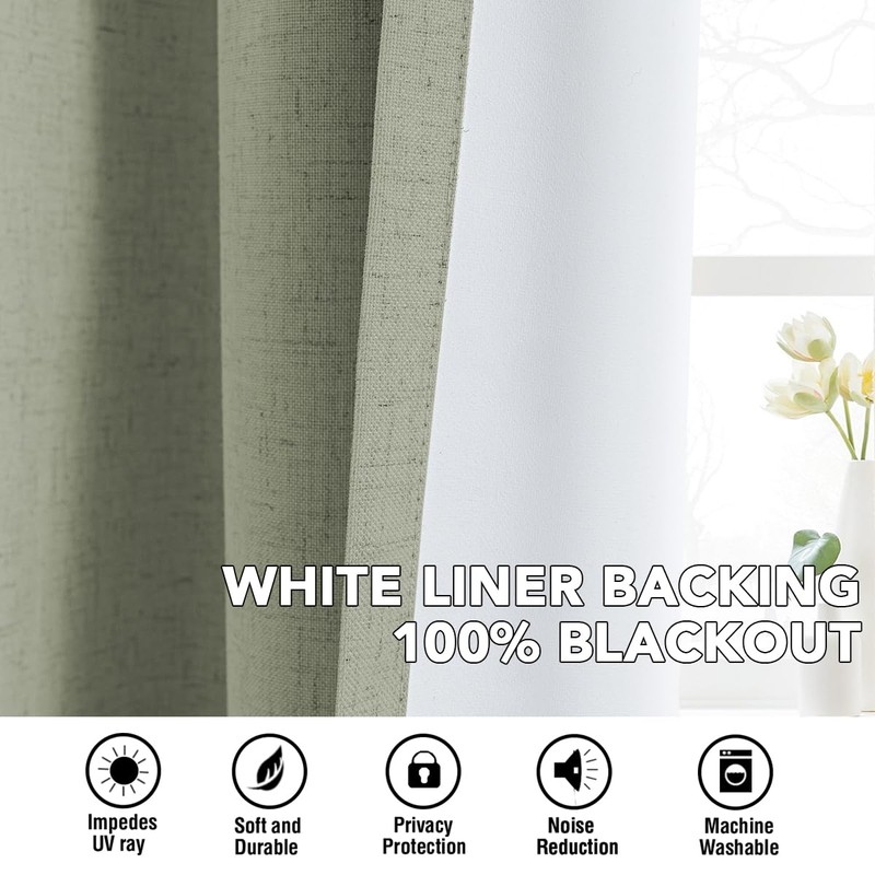 FASHIONABLE DECOR- These muti- functional curtains are made of durable blackout nature linen blended fabric, feature with white backing for 100% blackout effect.