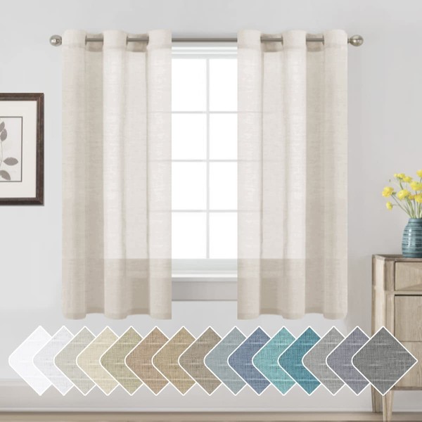 H.VERSAILTEX Linen Curtains Nickel Grommet Natural Linen Semi-Sheer Curtains 2 Panels Privacy Added Premium Soft Rich Material Drapes for Bedroom/Living Room/Sliding Door - 37x63 Inch- Natural