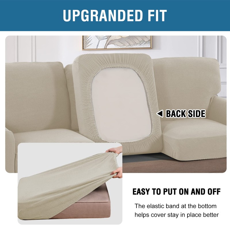 - MULTI-PIECE STYLE: Our newest modern stretch sofa slipcovers are constructed with 6 PIECE (including 2 backrest cover, 2 cushion covers and 2 armrest covers), separate covers can be better cleaned and replaced. Allows you to create the custom upholstered look you have been waiting for in vibrant checked pattern jacquard. Featuring a secure and exacting fit with smart seam and elastic edging all around