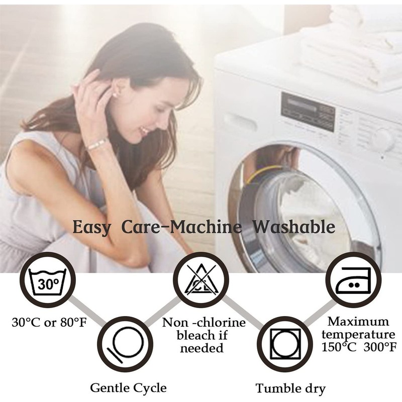 - EASY CARE: Machine washable for easy care and maintenance, use only non-chlorine bleach when needed, tumble dry low and warm iron as needed