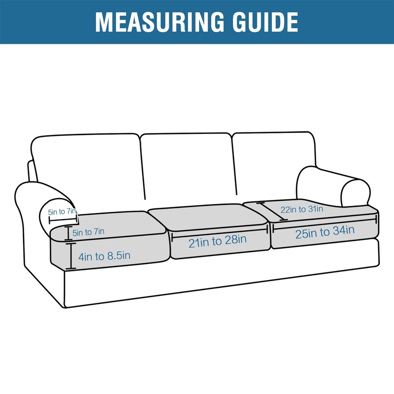 - PERFECT FIT FOR T CUSHION: Include 2 T Cushion (same size) and 1 Box Cushion. T Cushion:25-34" length, 22-31" width and 4-8.5" height. Box Cushion:21-28" length, 22-31" width and 4-8.5" height. To perfect for the most of size, it's crafted from thicken soft jacquard fabric with high quality stretch, which not easy to be out of shape. The exclusive design will be more reasonably suitable for your T couch cushion!