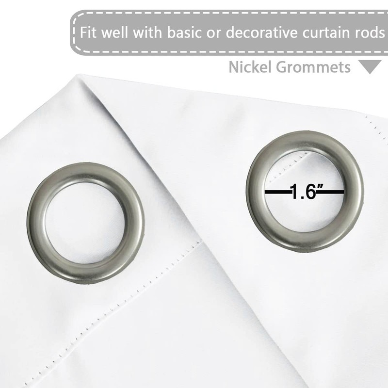 - STANDARD SIZE: Sold per set including 2 panels. Each panel measures: 52"W x 72"L|Set measures: 104"W x 72"L. Each panel has 8 elegant metal grommets, inner diameter of grommet is 1.6", fit well with standard or decorative curtain rods