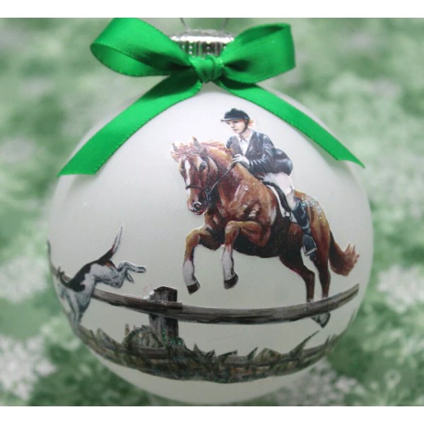 H044c Hand-made CUSTOMIZABLE Christmas Ornament horse -chestnut fox hunter hound