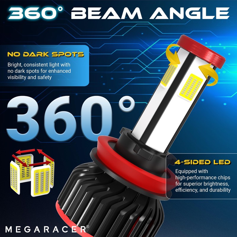 - 600% BRIGHTER THAN HALOGEN: Our 4 Sided H11 fog light bulbs emit 6000K pure white light at a 360 degree, replacing the dim bulb.