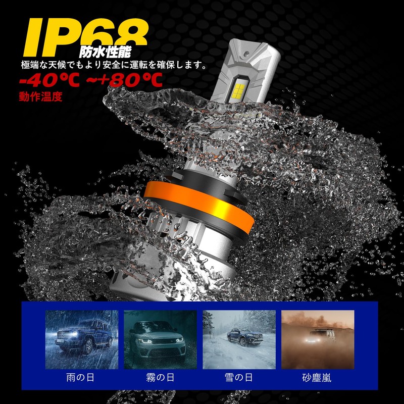 - Waterproof Performance & Built-In Canceller: The LED headlamp is IP68 waterproof, so it does not affect its performance even when wet with water in rain or snow, and it can be used in a variety of weather. High quality LEDs have a continuous working life of over 70,000 hours, long lasting and durable. Built-in canceller, Error Free 99% of vehicles