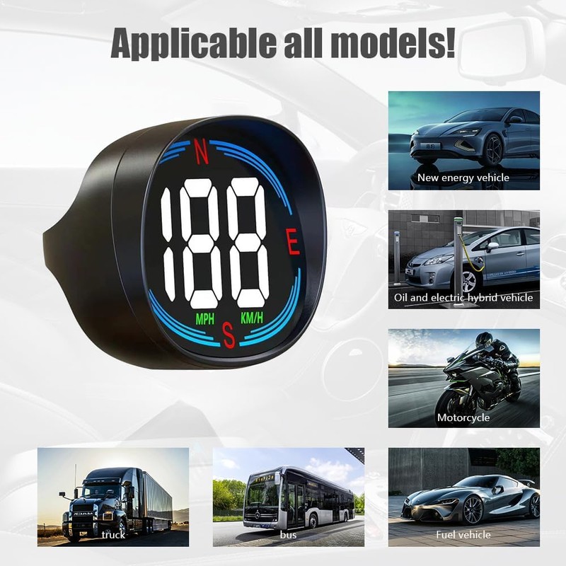 AZIJYV H2 Digital Speedometer GPS HUD Universal All Cars Head Up Display Vehicle Speed Compass MPH KMH Speed Gauge Plug and Play