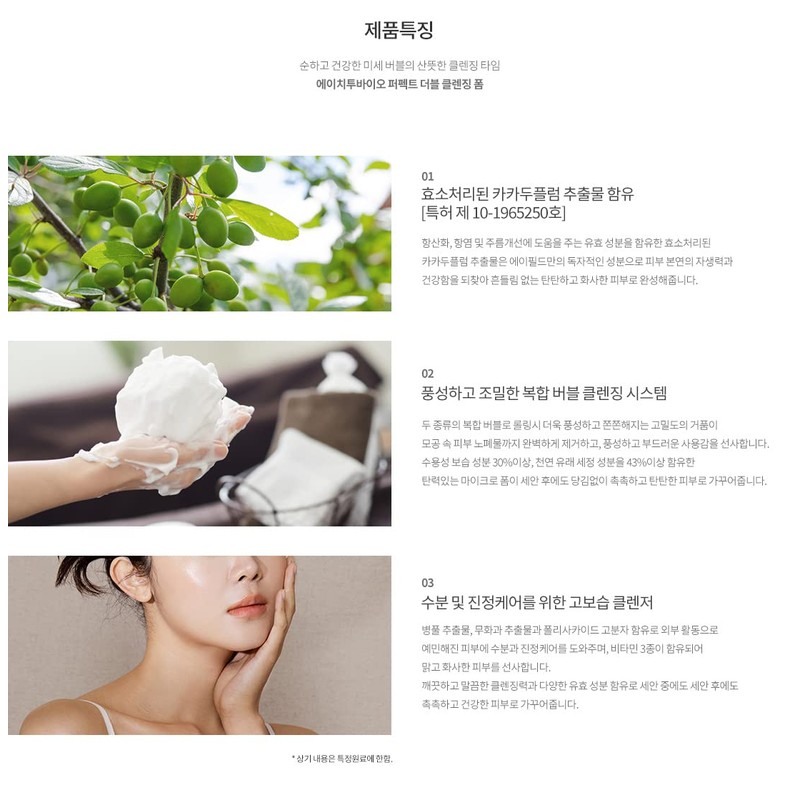 H2VA25 Perfect Double Cleansing Foam 100ml / 3.38oz Rich and Elastic Microfoam High Moisturizing Cleanser