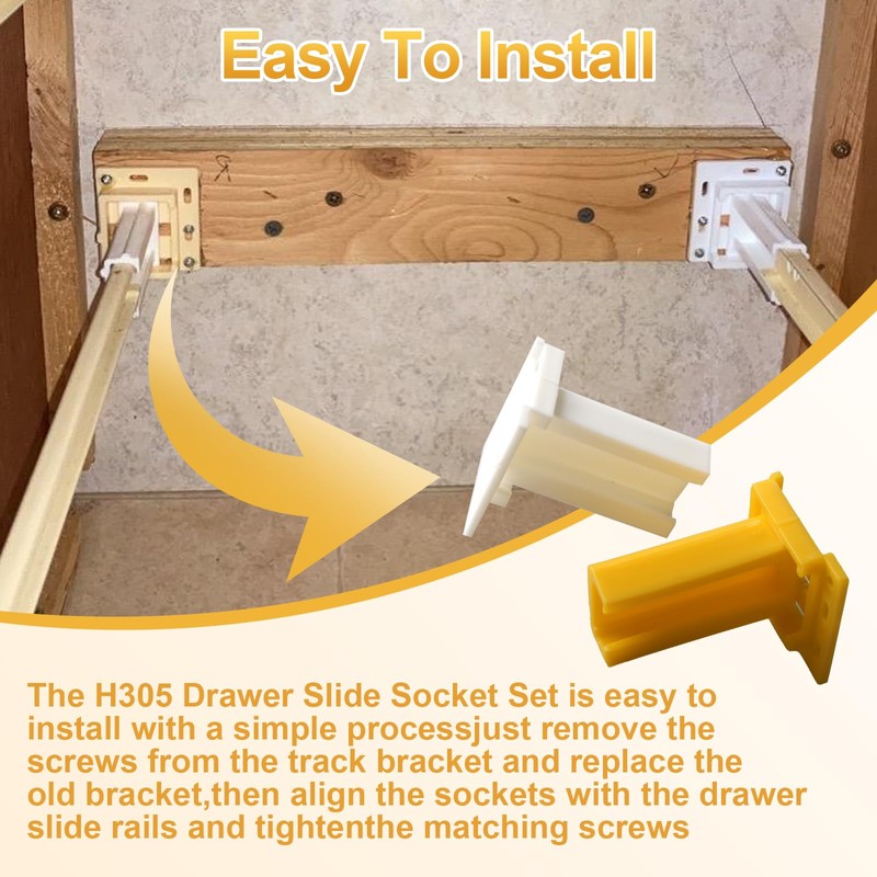 - Easy To Install : The H305 C-Shaped Drawer Slide Socket Set is easy to install with a simple process,just remove the screws from the track bracket and replace the old bracket,then align the sockets with the drawer slide rails and tighten the matching screws