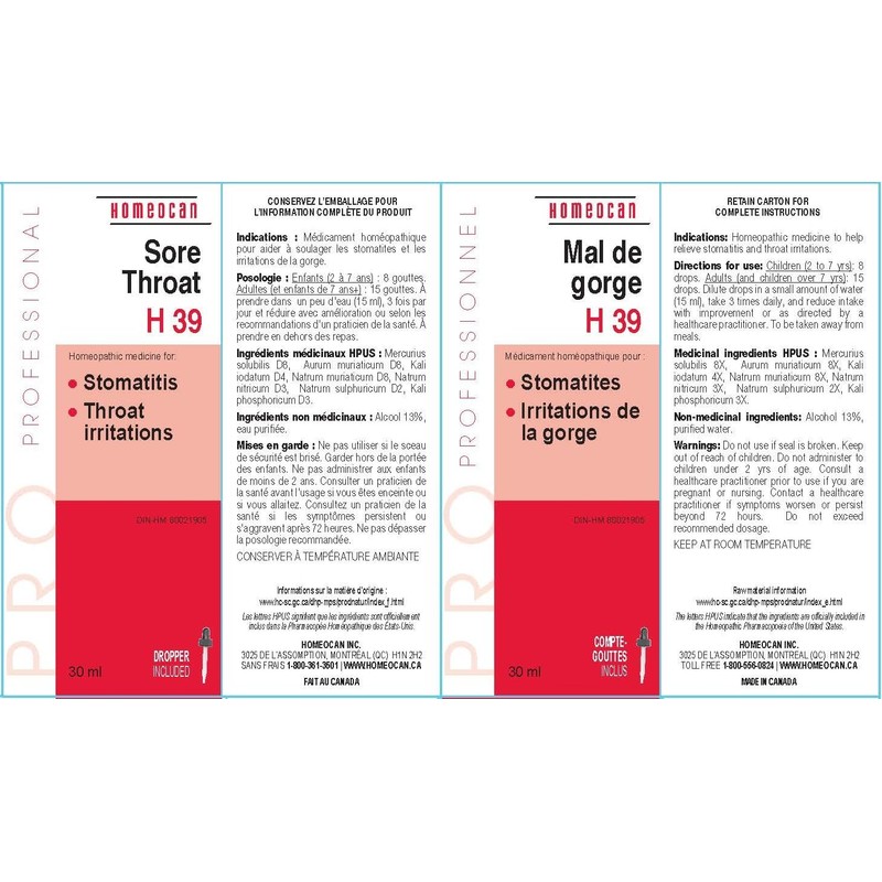 - Sore Throat Complex H39 is a homeopathic medicine designed to reduce the intensity and duration of symptoms such as stomatitis and throat irritation.