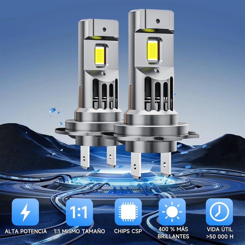 - 💡【Patrón de Haz Perfecto】La bombilla H7 recién actualizada está diseñada con chips de bombilla de alta gama en ambos lados, tecnología de patrón de haz 1:1 para que el haz no se enfoque de forma desigual, sin puntos negros o áreas sombreadas que causen deslumbramiento a los vehículos que se aproximan, y una placa base ultrafina de 0,03 pulgadas que acerca la bombilla al área de emisión de luz del haz halógeno para garantizar un patrón de haz perfecto.
