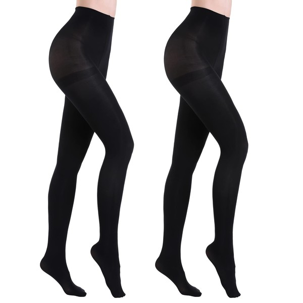 HA WA 2 Pairs Semi Opaque Tights, Winter Control Top 40D Microfiber Leggings for women