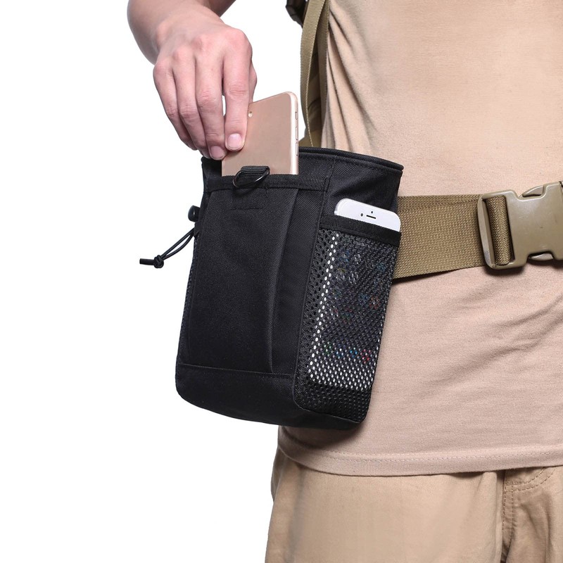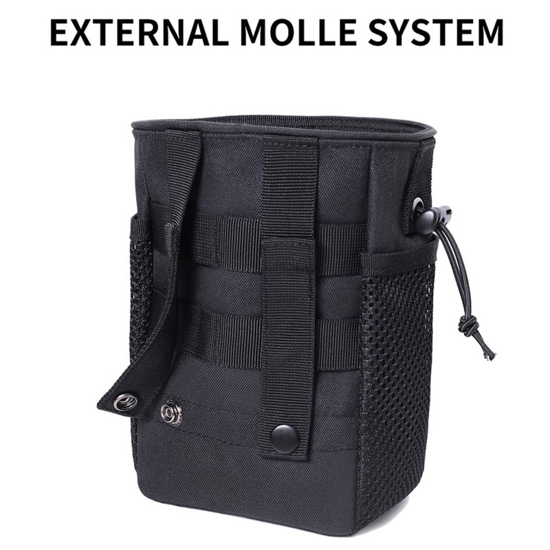 - 【Powerful function]】- Easy-to-access top pocket with drawstring, 2 side pockets and 1 self-adhesive front pocket on the front, 2 buckle mold attachments on the back, Dump Pouch can retrieve ammunition, store flashlights, tactical knives, and tactical pens and many more.