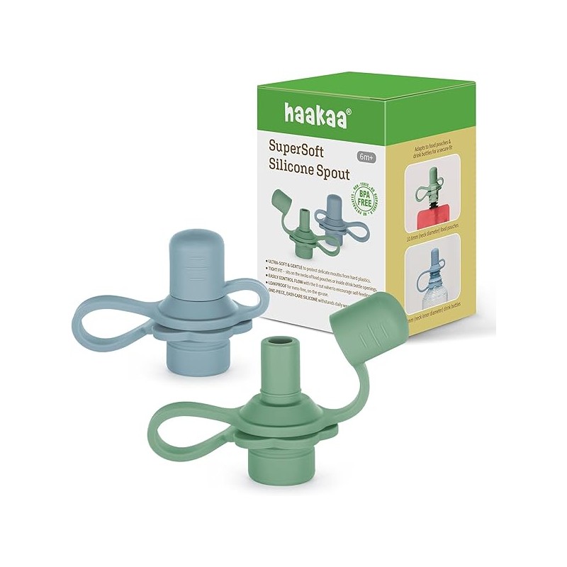 haakaa Multi-Functional Silicone Spout,Pouch Topper No Spill,Water Bottle Topper for Toddlers,100% Food Grade Silicone,2 Pack