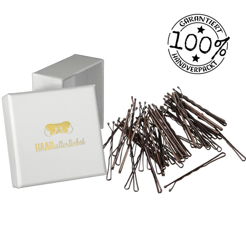 HAARallerliebst Hair Clips (50 Pieces | Dark Brown Shiny | 5 cm) with Box for Storage (Box Colour: White)