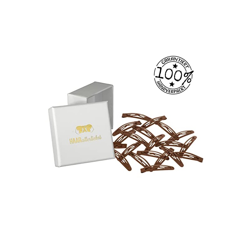 - Large pack as storage: in this HAARallerliebst hair clip box there are 20 high-quality brown hair clips just over 4 cm long. So if a hair clip is lost, you still have enough replacement. Thanks to the included high-quality box, the hair clips have a place where you can find them again and again and never have to go searching again.