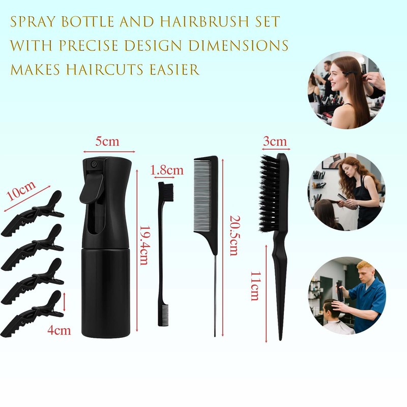 - 【Müheloses Styling-Duo】 Das dynamische Duo aus Sprühflasche und Haarbürste macht das Styling zum Kinderspiel. Die Sprühflasche befeuchtet das Haar gleichmäßig und bereitet es für das Styling vor, während die Haarbürste die Kopfhaut sanft entwirrt und massiert, sodass das Haar glatt und frisierbar bleibt.