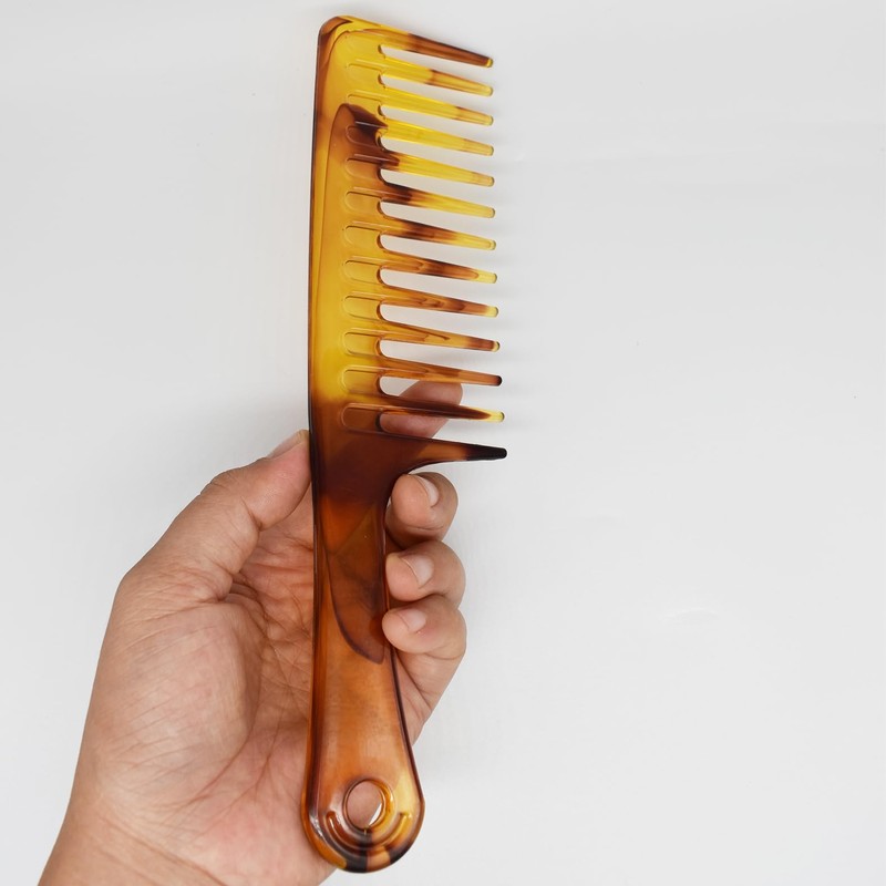 Haarkamm mit breiten Zähnen, bernsteinfarben, große Haarentwirrung, Dusch-Shampoo-Kamm, Friseur-Haarstyling-Kamm, entworfen für lockiges Haar oder langes nasses Haar
