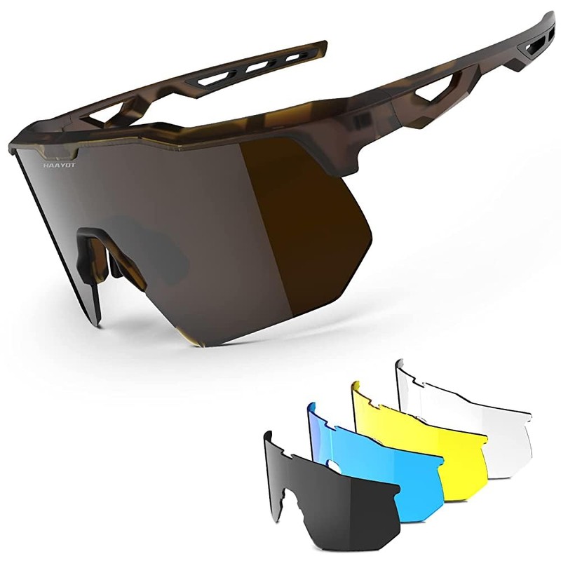HAAYOT Polarized Cycling Glasses,Sports Sunglasses for Men Women,Baseball Biking Running Fishing Sunglasses with 5 Interchangeable Lenses Dark Brown