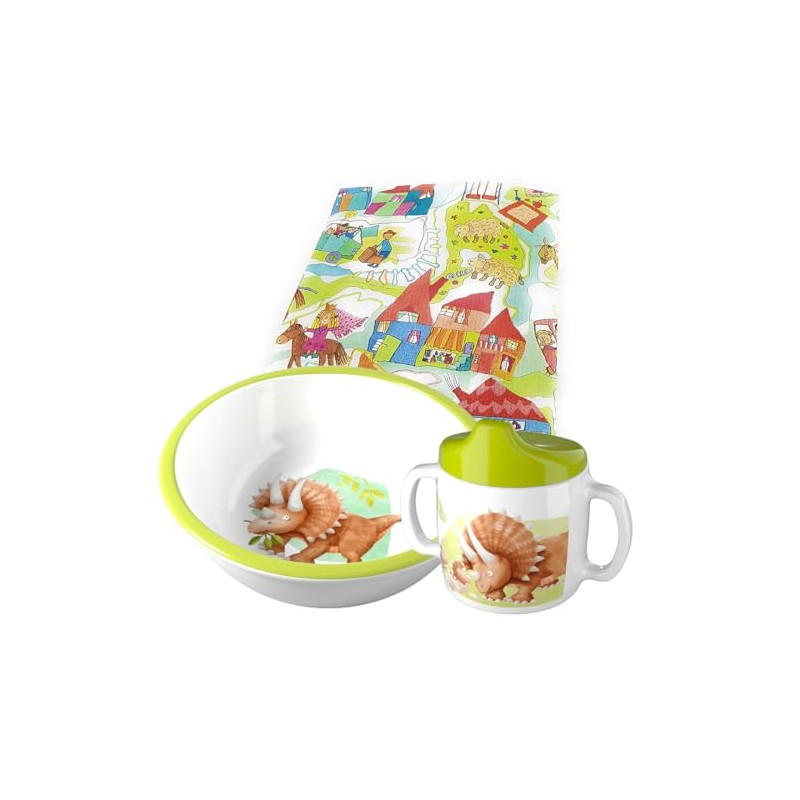 HABA Dino Melamine Tableware Set for Children - Dinosaur Design - Drinking Cu...