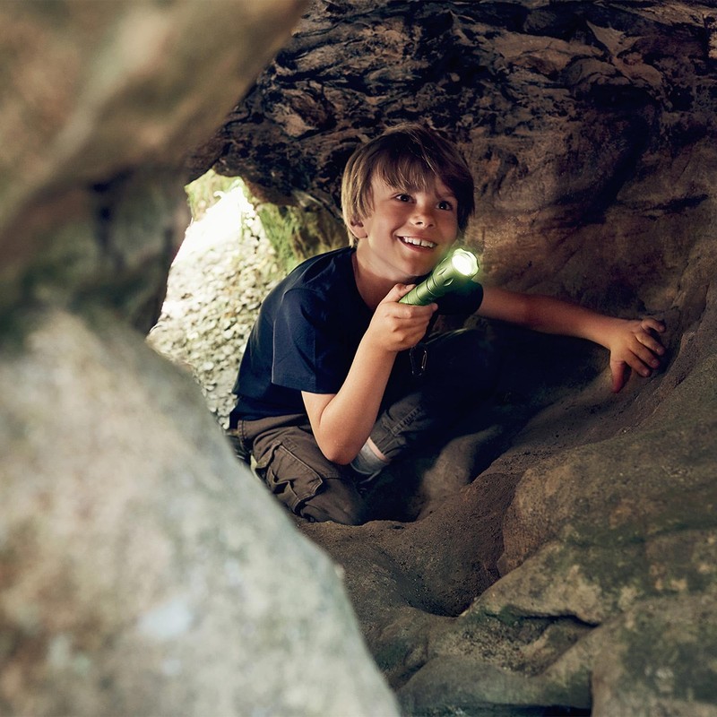 - The sturdy plastic kids torch is ideal for exploring small caves as well as camping or staying overnight in the tree house. Especially brave people take a night hike with it