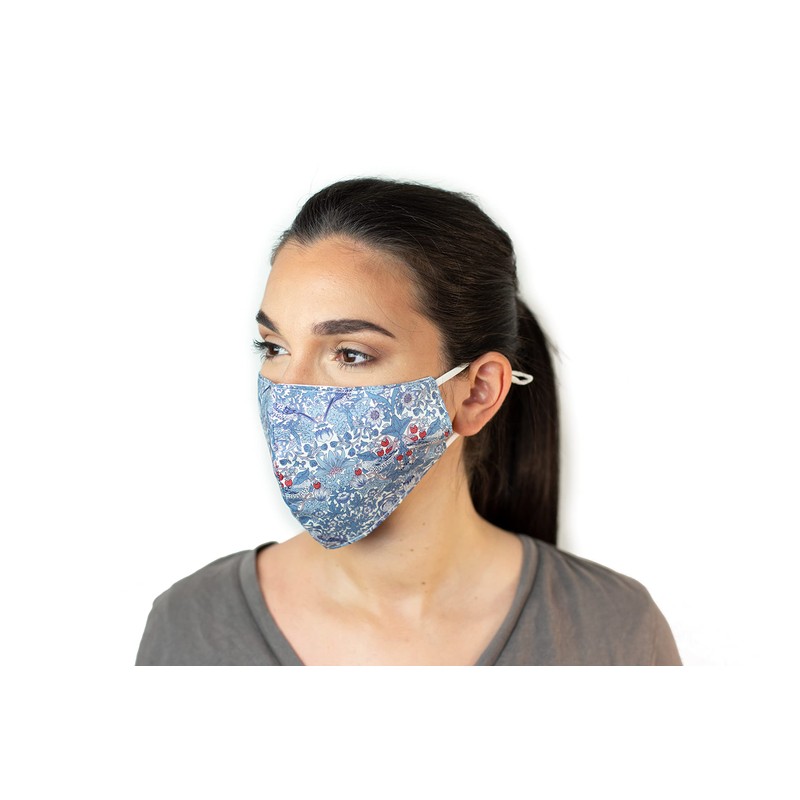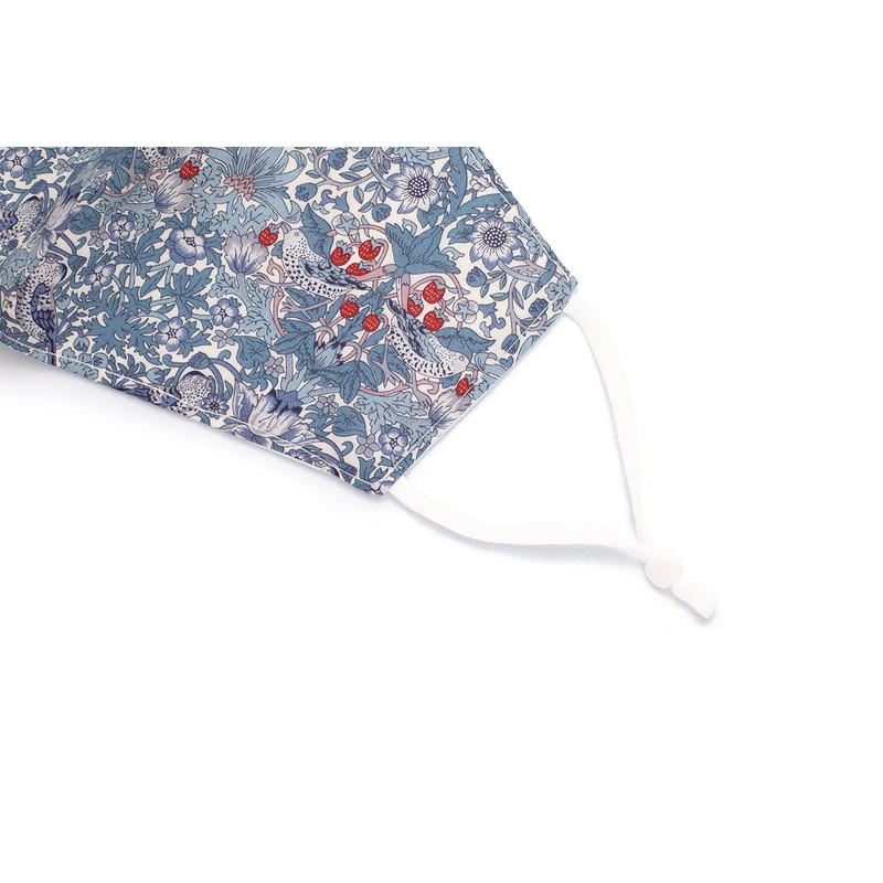 Habac Studio 100% Mulberry Silk and Liberty of London Face Mask Built Filter 4 Layers Machine Washable Adjustable. Handmade UK. (Strawberry Thief Blue)