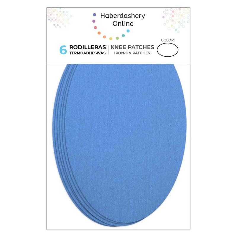 Haberdashery Online - 6 Iron-On Knee Pads Elbow Patches for Clothes Protection, Ideal for Trousers, Jackets, Sweaters, Shirts, 16cm x 10cm, Size M, Sky Blue